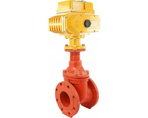 Задвижка клиновая Завод им. Гаджиева 30ч939р Ду80 Ру16 аналог МЗВГ фланцевая красная, корпус - чугун, уплотнение - резина, обрезиненный клин, Тмакс=150°C с невыдвижным штоком и электроприводом MT-100 380В