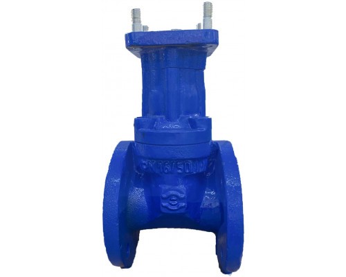 Задвижка клиновая Завод им. Гаджиева 30ч939р Ду50 Ру16 аналог МЗВ фланцевая синяя, корпус - чугун, уплотнение - резина, обрезиненный клин, Тмакс=75°C с невыдвижным штоком под привод